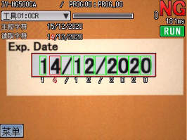捕获日期/批号图像。在运行检测时,如果检测到没有日期/批号的包装,它会发送错误信号输出到作业线,将此产品剔除。