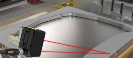 金属冲压 挑战1:检测金属板的有无,以及金属板是否正确放置在压机上,以降低材料浪费和模具损坏的危险 解决方案1:激光传感器检测距离远,能安装在压机外部,避免对Q5X传感器造成损坏 挑战2:金属件高反光,而且背景通常是相似的颜色,普通传感器很难可靠检测 解决方案2:激光传感器能可靠检测高反光的金属件,即使和被测物呈锐角