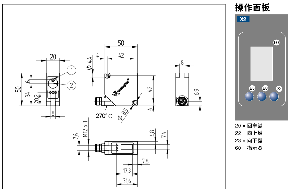 50-3050mm激光测距 便于操作的图形显示器 即使处于极度倾斜的位置,依然能够实现 可靠识别光泽度/黑色的物体 模拟输出端(0...10 V/4...20 mA) 2个彼此独立的输出端 支持232通讯 可替换品牌 KEYENCE,LR-TB2000/LR-TB5000 SICK,DT35/DT50 IFM,O5D100 传感器采用耐刮镜头,能够通过测量光传输时间确定传感器与发射光的距离。 WinTec(抗干扰技术)能够防止直接相邻或相对的传感器产生相互干扰。